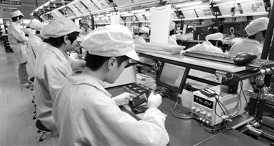 移动互联网的迅猛发展,给国产手机厂商新的机会。1月18日,国产手机品牌金立在深圳发布了首款搭载联发科MT6589芯片的智能新品——风华2,并表示将借助电商渠道京东商城进行首发预订,这意味着千元四核智能时代的来临。图为工人在亚洲最大的单体智能终端生产基地金立工业园生产A车间操作。 陈 静摄