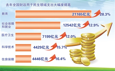 全年财政支出表现出两个方面的特点:一是民生等重点支出得到切实保障,在教育、社保和就业、医疗卫生、科学技术、住房保障等多个民生领域的支出都有大幅度提高。其中,去年全年累计教育支出21165亿元,比上年增长28.3%;社会保障和就业支出12542亿元,比上年增长12.9%;医疗卫生支出7199亿元,比上年增长12%;科学技术支出4429亿元,比上年增长15.7%;住房保障支出4446亿元,比上年增加625亿元,增长16.4%。二是财政支出均衡性进一步提高。12月份,全国财政支出20817亿元,占全年支出的16.6%,比2011年(18.6%)、2010年(20.3%)分别下降2个和3.7个百分点。