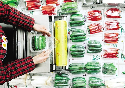 1月23日,华县金农果蔬专业合作社的社员在包装新鲜的无公害蔬菜。春节即将来临,在陕西国家级绿色无公害蔬菜基地县华县,大量的优质蔬菜等待投放市场。