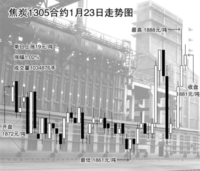 去年12月初以来,焦炭期货受供给、需求以及关税政策多重利好推动,期货价格一路强劲上涨,日成交量和持仓量也连续创下近期新高。1月23日,焦炭期货主力合约1305高开高走,收于1881元/吨,上涨19元/吨,涨幅1.02%,成交量1034876手。