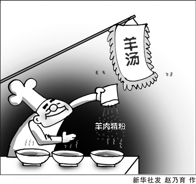 事件回放:有媒体近日报道,在开水中加入羊肉精粉就可以做出鲜香可口的“羊汤”,在猪肉上涂上牛肉香膏也能够吃出牛肉味……通过一些添加剂、调味剂,许多食品迅速改变原有口味,摇身变成其他的食品,这让许多人担心,这样的“变身食品”是否安全。