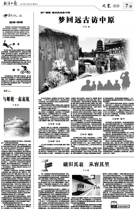 我的旅程是从天津出发,前往韩国济州岛。坐邮轮,现在已经成为很多北京、天津人前往韩国旅游的选择。皇家加勒比海洋航行者号邮轮是一艘吨位达138000吨,可容纳5000人的豪华邮轮。登船后,一切安排妥当,我就迫不及待地来到船上著名的室内活动最集中的皇家大道。大道两旁是销售世界知名品牌的商店和规模大小不一的酒吧。走上甲板,我惊讶地看到,上有画出红线的跑道、标准尺寸的篮球场、攀岩石、迷你高尔夫、乒乓球桌,以及不同规格的游泳池和冲浪池,有些客人已经迫不及待地换上运动衣衫开始海上运动了,一些孩子和老人则坐在泳池边和摆放好的躺椅上,晒太阳吹海风看大海,好一个悠闲场景。不光是这些,船上11层设有装备齐全的室内健身房,客人可以免费使用。在那里,还能听到一些专业人士介绍养生保健知识的讲座。