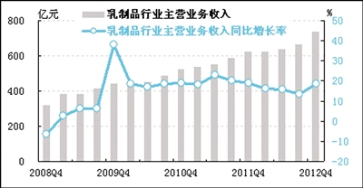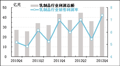 预计2013年一季度,乳制品行业利润总额同比增速有望继续加快。