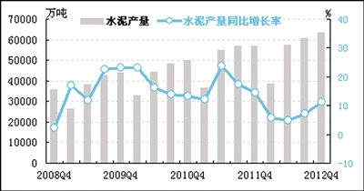 预计2013年一季度,我国将进入水泥需求淡季,水泥产量同比增速有可能会保持稳定或者小幅回落。