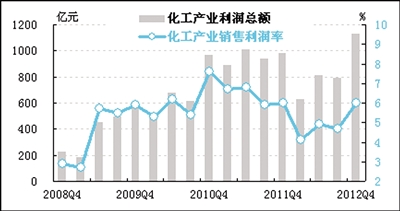 经测算,四季度化工产业销售利润率为6%,较上季度上升1.3点,低于全部工业销售利润率0.5个百分点。