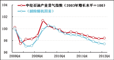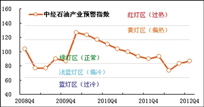 2012年四季度,中经石油产业景气指数为98.4,结束了此前连续5个季度的回落走势,呈现止跌企稳状态;中经石油产业预警指数为86.7,回升至正常的“绿灯区”内运行。