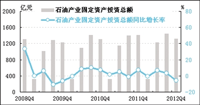 经初步季节调整,四季度石油产业固定资产投资总额为1320.3亿元,同比下降6%,增速由升转降,环比下降8.2%。