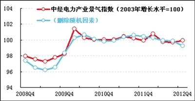 2012年四季度,中经电力产业①景气指数为99.9(2003年增长水平=100),较上季度基本持平(微升0.2点)。这表明电力行业在经过前两季度稳中趋缓的盘整后开始出现小幅上升。