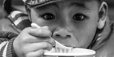 上图 1月22日,5岁的赵永春在杭州火车站候车时吃方便面。他的老家在陕西西安,父母在浙江义乌打工。