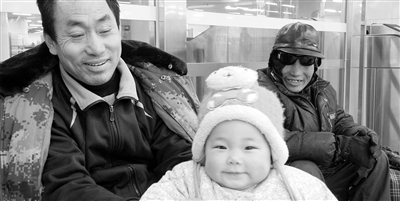 下图 1月26日,1岁半的圆圆和爷爷一起到北京西站取火车票。她的家乡在河南,父母在河北开小超市。爷爷说,往年都要为车票着急,今年的车票是儿子从网上预定的,少了排队等待的辛苦。4天后,圆圆就要踏上回家过年的路了。