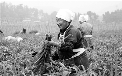 图② 1月25日,在贵州省龙里县湾寨乡供港澳蔬菜基地,布依族妇女在采摘新鲜蔬菜。 孙越隆摄
