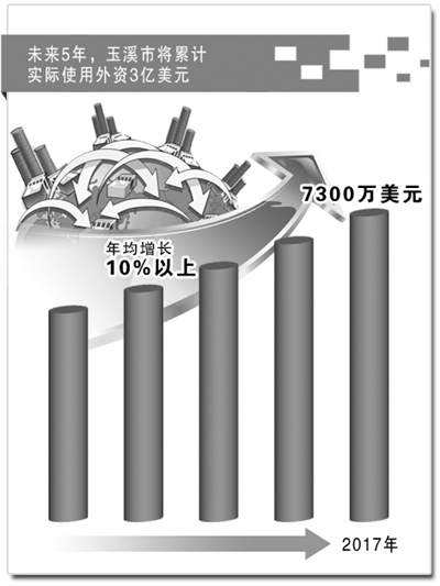 玉溪市委、市政府明确提出招商引资的目标任务:未来5年,累计实际使用市外国内资金1300亿元,累计实际使用外资3亿美元,力争外来投资投向可持续形成财税收入、带动就业的产业项目资金占全部实际到位外来投资总额的比例达到70%以上。