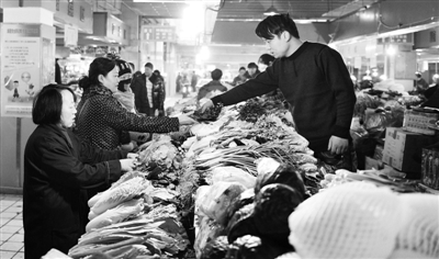 1月31日,消费者在西宁市莫家街菜市场选购蔬菜。
