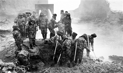 图为2月2日,当地民兵在进行抢修。