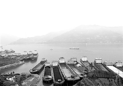 2月4日,大批船舶停靠在水位下降后的三峡大坝上游湖北省秭归县沙湾水域等待过闸。从2012年11月底开始,三峡枢纽在发电的同时,持续为下游进行生态补水,水库水位也逐步下降,2013年2月3日晚首次低于170米。至此,三峡水库已累计为下游生态补水约45亿立方米。 王辉富摄(新华社发)