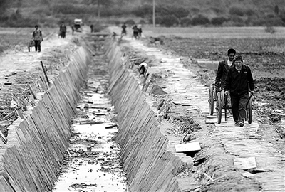 ① 1月31日,江西省南丰县白舍镇田东村农民在整修农田灌溉水渠。 新华社记者 周 科摄