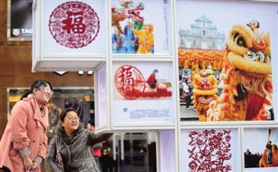2月4日,游客在北京王府井步行街参观反映过年传统的老照片。当日,北京王府井举行“金街过大年”活动,该活动以“年的记忆”为主题,通过展示中国传统过年的老照片,反映社会生活的变迁,节日气氛渐浓。