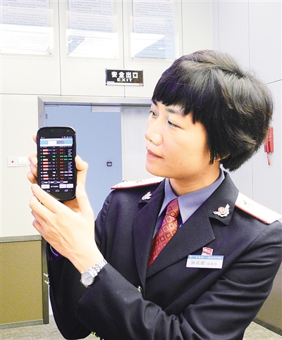 图② 1月30日,在广州南站综合指挥中心,技术员在展示集车站生产组织、应急指挥、综合协调和旅客服务多功能于一体的无线终端。 齐 慧摄