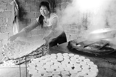 ③2月3日,广西武宣县三里镇东岭村村民在蒸米饼。当日是农历腊月廿三,民间俗称“小年”,广西武宣、桂平等地有做米饼的习俗。 陈冬梅摄(新华社发)