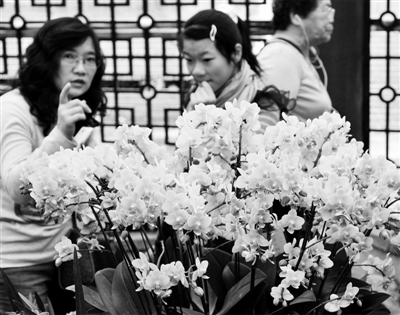 2月3日,观众在台北士林园艺所参观新春蝴蝶兰特展。自当日起至2月10日,台北士林园艺所新兰亭举行新春蝴蝶兰特展,展出30余个品种的蝴蝶兰。色彩缤纷的花朵为即将到来的新春佳节增添了祥和气氛。 新华社发