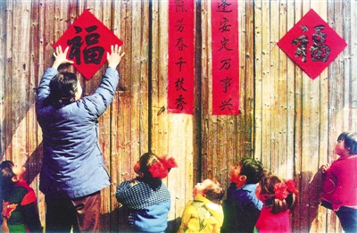 春联是楹联家族的一个重要的门类,是由古代的“桃符”直接演化而来。桃符,就是挂在门两旁的两块桃木板,上面画有驱邪的门神,如“神荼”、“郁垒”二神的画像,以禳灾祈福。据史料记载,唐玄宗年代,民间在春节期间广泛流行着书写悬挂“祈福禳灾之辞”的民俗,而且文字还以对偶句居多,随着这种非诗非骈文的文字继续演化,当独立使用的对偶句文字跃上桃符板,就标志了楹联的产生。至五代后蜀,后主孟昶作“新年纳余庆,嘉节号长春”,一般意义上认为,此联便是春联的始祖。