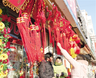 在内蒙古奈曼旗大沁他拉镇的奈曼街上,临街的商铺纷纷挂起了大红灯笼。红彤彤的灯笼映照出浓郁的喜庆氛围,洋溢着浓浓的“年味”。