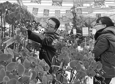 2月7日,北京世纪奥桥花卉园艺超市,市民在选购花卉。春节临近,鲜花消费进入高峰期,今年北京市准备了1500万盆年宵花供应春节市场。