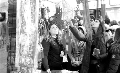 2月6日,几名市民在纽约皇后区法拉盛中国城观赏中国传统的春节挂饰。随着中国传统的新年临近,美国纽约中国城年味渐浓,鲜花和各种吉祥喜庆的新春挂饰拉开了迎接新年的序幕。 新华社发