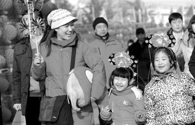 当天是农历正月初三,北京天气晴好,许多市民走出家门,逛庙会、赏民俗、迎新春。在龙潭庙会,天南海北的小吃让游客大呼过瘾:北京的隆福寺茶汤、卤煮火烧和灌肠,新疆烤馕,四川担担面,香港鱼丸……伴着美食的香味,民俗舞台上的“绝活”引来游人一阵阵的叫好声。