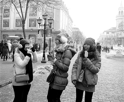 3名外地来哈尔滨的学生尽情享受东北式大年。