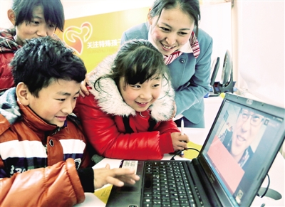春节假期,山东枣庄供电公司滕州客服中心员工带着新春礼物,来到当地留守儿童快乐成长站,和孩子们一起做游戏、迎新春,并教孩子们通过电脑视频与远方的亲人联系,其乐融融。