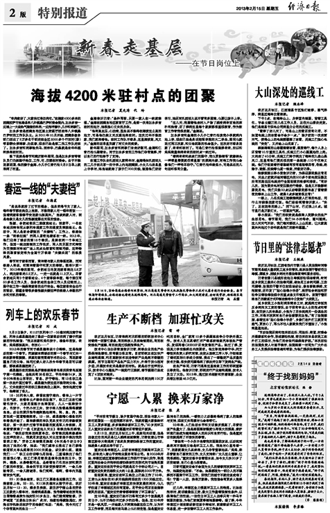 2月9日除夕,K1137次列车17∶05准时到达南宁车站,列车长盛显德送走了最后一位旅客后收到了妻子范娜娜的手机短信:“我正在家和妈包饺子,准备年夜饭,爸爸、妈妈都挺高兴,你放心……”