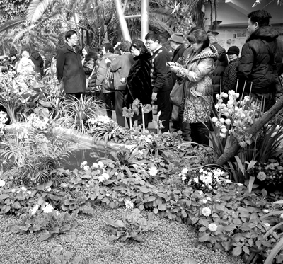 农历正月初四的北京暖阳高照。在北京植物园,第九届北京兰花展游览区内人流涌动,一片祥和喜庆的景象。