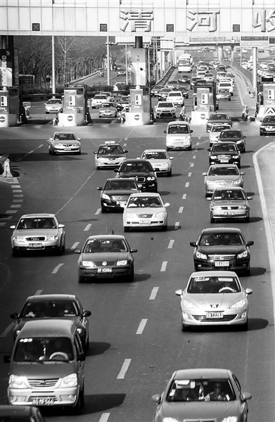 2月15日,在京藏高速清河收费站,进京车辆较往日增多。
