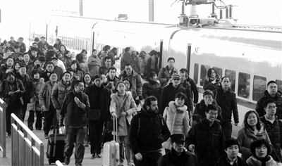 右图 2月15日,抵达苏州火车站的旅客走向出站通道。