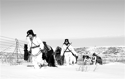 2月11日,新疆伊犁军分区所属边防部队派出执勤小分队巡逻在千里边防线,确保边境安宁稳定。图为红海沟边防连的执勤官兵在海拔4700多米的边防线上巡逻。