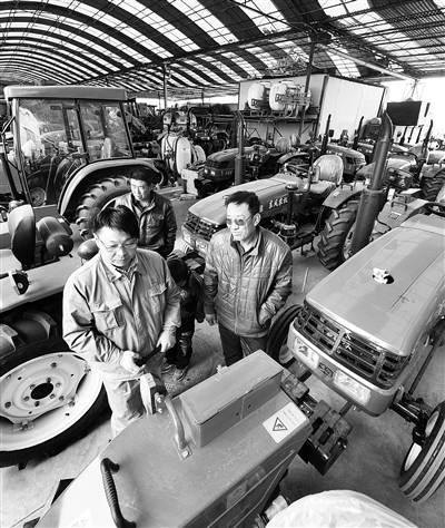 2月18日,在宁夏银川市西北农资城内,工作人员在向农户推介一款农用机。春耕时节即将到来,宁夏各地不少农户纷纷开始选购农机、种子、化肥等农资,以保证春耕工作顺利开展。