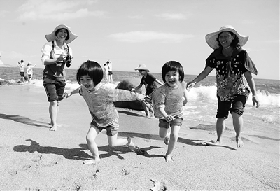 上图 游客在海南省三亚市南山景区海边游玩。 陈文武摄(新华社发)