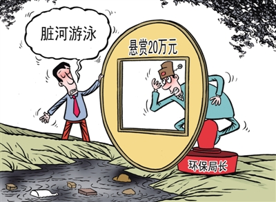 近日,浙江瑞安、苍南两地先后有人悬赏几十万元,请环保局局长下河游泳,引起社会广泛热议。笔者认为,请环保局局长下河游泳的闹剧,反映出人们对农村环境状况的忧虑与无奈。