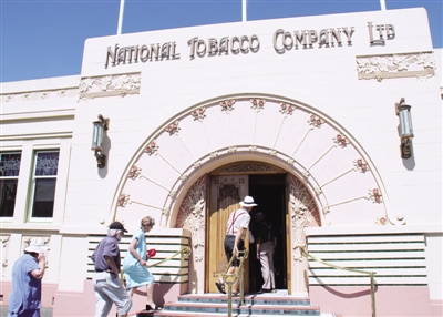 2月中旬,在新西兰内皮尔,参观者步入建于1933年的国家烟草公司办公楼。位于新西兰北岛东部的内皮尔是一座在地震废墟上重建的城市,被誉为“世界装饰艺术之都”,在南半球找不到另一个地方能够拥有如此集中的装饰艺术风格建筑。