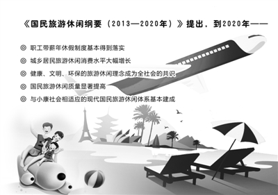国务院日前批准发布《国民旅游休闲纲要》,引导社会树立健康、文明、环保的休闲理念,更好满足广大人民群众旅游休闲消费需求。这一历时3年推出的《纲要》,在关注国民生活方式和生活质量改善的同时,对旅游及相关产业发展、扩大消费和经济转型都将带来积极的推动作用。