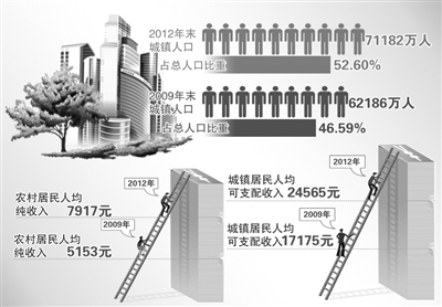 越来越多的打工者享受着城镇化带来的便利。快速发展的城镇化,就是这样生动、深刻又广泛地影响着我国经济社会发展,带来了城乡面貌前所未有的改变,带来了城乡居民生产生活的显著变化,也为中国经济持续平稳增长提供了有力支撑。据统计,2012年我国城镇化率已由2008年的45.7%提升到51%以上。专家认为,这一数字变化不仅表明大批农村富余劳动力成功转移,也表明几千年来的“乡村中国”正在向“城镇中国”加快转变。