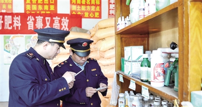 3月4日,河北省保定市唐县工商局执法人员在对一家农资经营网点进行检查。春耕备耕时节,该县工商局组织执法人员对辖区农资经营站点进行拉网式检查,严厉打击销售假冒伪劣种子、化肥和农药等农资商品的违法行为。