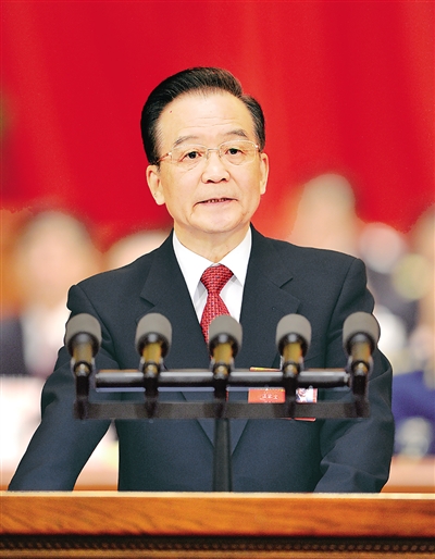 3月5日,第十二届全国人民代表大会第一次会议在北京人民大会堂开幕。国务院总理温家宝作政府工作报告。新华社记者 黄敬文摄