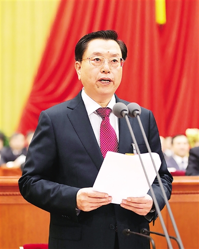 3月5日,第十二届全国人民代表大会第一次会议在北京人民大会堂开幕。张德江主持会议。