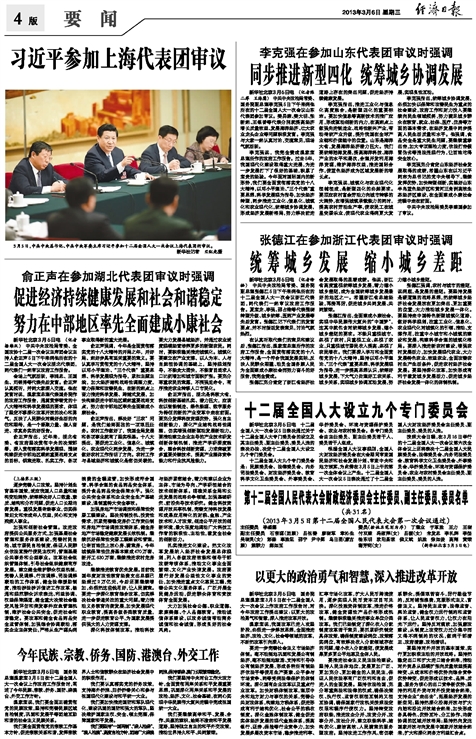 张德江在参加浙江代表团审议时强调 统筹城乡发展 缩小城乡差距