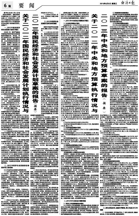 关于二〇一二年国民经济和社会发展计划执行情况与