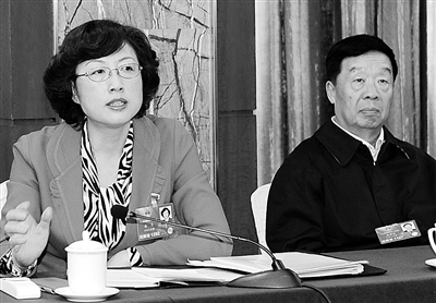 3月7日,全国人大代表、山东威海市市长张惠在小组讨论中发言。她表示,雾霾天气使环境问题不再是一个区域性问题,当前要抓紧解决各地环保标准不统一、部分地区和行业环保门槛较低的问题。 本报记者 单保江摄