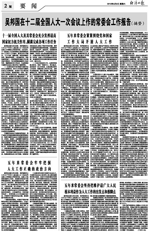 五年来常委会牢牢把握 人大工作正确的政治方向