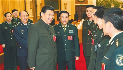 习近平认真听取了代表们的发言,并发表了重要讲话。他指出,建设一支听党指挥、能打胜仗、作风优良的人民军队,是党在新形势下的强军目标。听党指挥是灵魂,决定军队建设的政治方向;能打胜仗是核心,反映军队的根本职能和军队建设的根本指向;作风优良是保证,关系军队的性质、宗旨、本色。全军要准确把握这一强军目标,用以统领军队建设、改革和军事斗争准备,努力把国防和军队建设提高到一个新水平。要铸牢听党指挥这个强军之魂,坚持党对军队绝对领导的根本原则和人民军队的根本宗旨不动摇,确保部队绝对忠诚、绝对纯洁、绝对可靠,一切行动听从党中央和中央军委指挥。要扭住能打仗、打胜仗这个强军之要,强化官兵当兵打仗、带兵打仗、练兵打仗思想,牢固树立战斗力这个唯一的根本的标准,按照打仗的要求搞建设、抓准备,确保部队召之即来、来之能战、战之必胜。作风优良是我军的鲜明特色和政治优势。要把改进作风工作引向深入,贯彻到军队建设和管理每个环节,真正在求实、务实、落实上下功夫,夯实依法治军、从严治军这个强军之基,保持人民军队长期形成的良好形象。